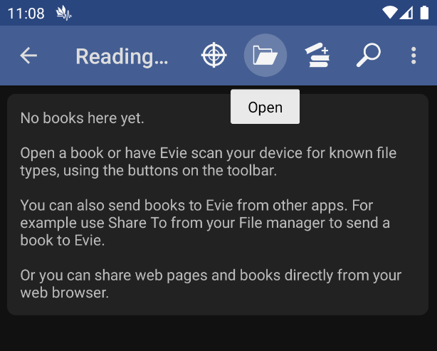 Evie uses Android’s built in File Manager to allow you to pick a book.